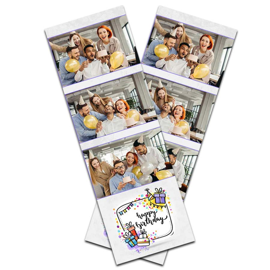 Bei Fotostreifen empfehlen wir Ihnen das „Fotobox PREMIUM“ Paket mit Profidrucker. Der Profidrucker schneidet zwei Streifen (je 5 × 15 cm) im Druckwerk. Die Druckzeit beträgt ca. 15 Sekunden pro Shot, im Vergleich zum Canon-Drucker des „Fotobox PLUS“ Pakets (ca. 50 Sekunden). Beim Canon-Drucker müssen die Streifen mit einer Schere durchgeschnitten werden.
