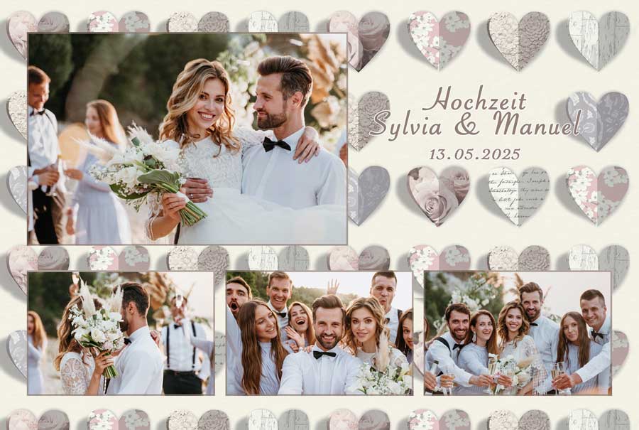 Bitte wählen Sie sich ein Print Wunschdesign für Ihre Fotobox aus und hinterlegen Ihren persönlichen Wunschtext / Datum. Sollten Sie noch unschlüssig sein, können Sie auch ohne Printdesign buchen und wir senden Ihnen nach Bestelleingang eine PDF Datei mit sämtlichen Vorlagen zu. Ihre Auswahl teilen Sie uns im Nachgang zeitnah per eMail mit.