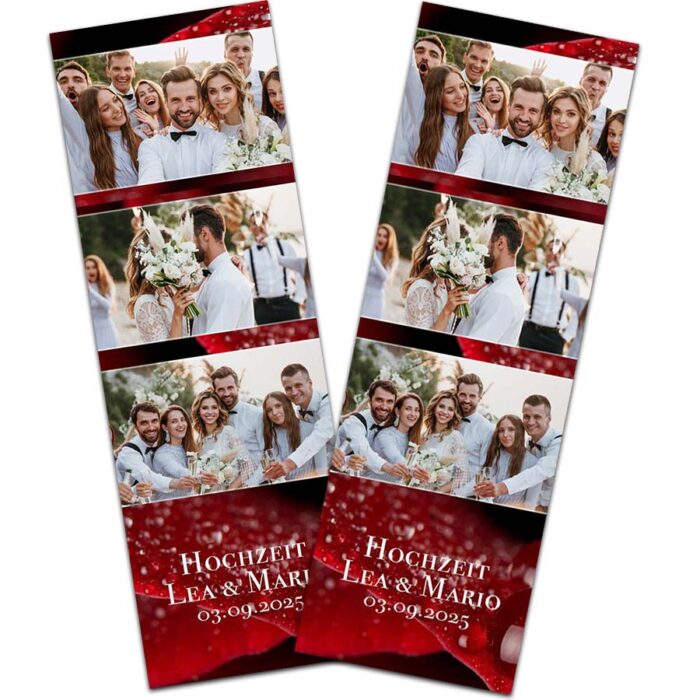 Bei Fotostreifen empfehlen wir Ihnen das “Fotobox PREMIUM” Paket mit Profidrucker. Der Profidrucker schneidet zwei Streifen (je 5 × 15 cm) im Druckwerk. Die Druckzeit beträgt ca. 15 Sekunden pro Shot, im Vergleich zum Canon-Drucker des “Fotobox PLUS” Pakets (ca. 50 Sekunden). Beim Canon-Drucker müssen die Streifen mit einer Schere durchgeschnitten werden.