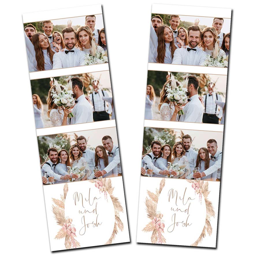 Bei Fotostreifen empfehlen wir Ihnen das “Fotobox PREMIUM” Paket mit Profidrucker. Dieser schneidet die beiden Streifen (je 5*15cm) im Druckwerk. Zudem beträgt die Druckzeit beim Profidrucker nur ~15 Sekunden (gegenüber dem Canon Drucker “Fotobox PLUS Paket” bei ~50 Sek)